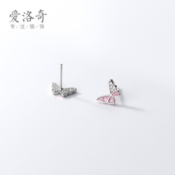 s925 sterling silver trendy simple black butterfly sweet chic earrings